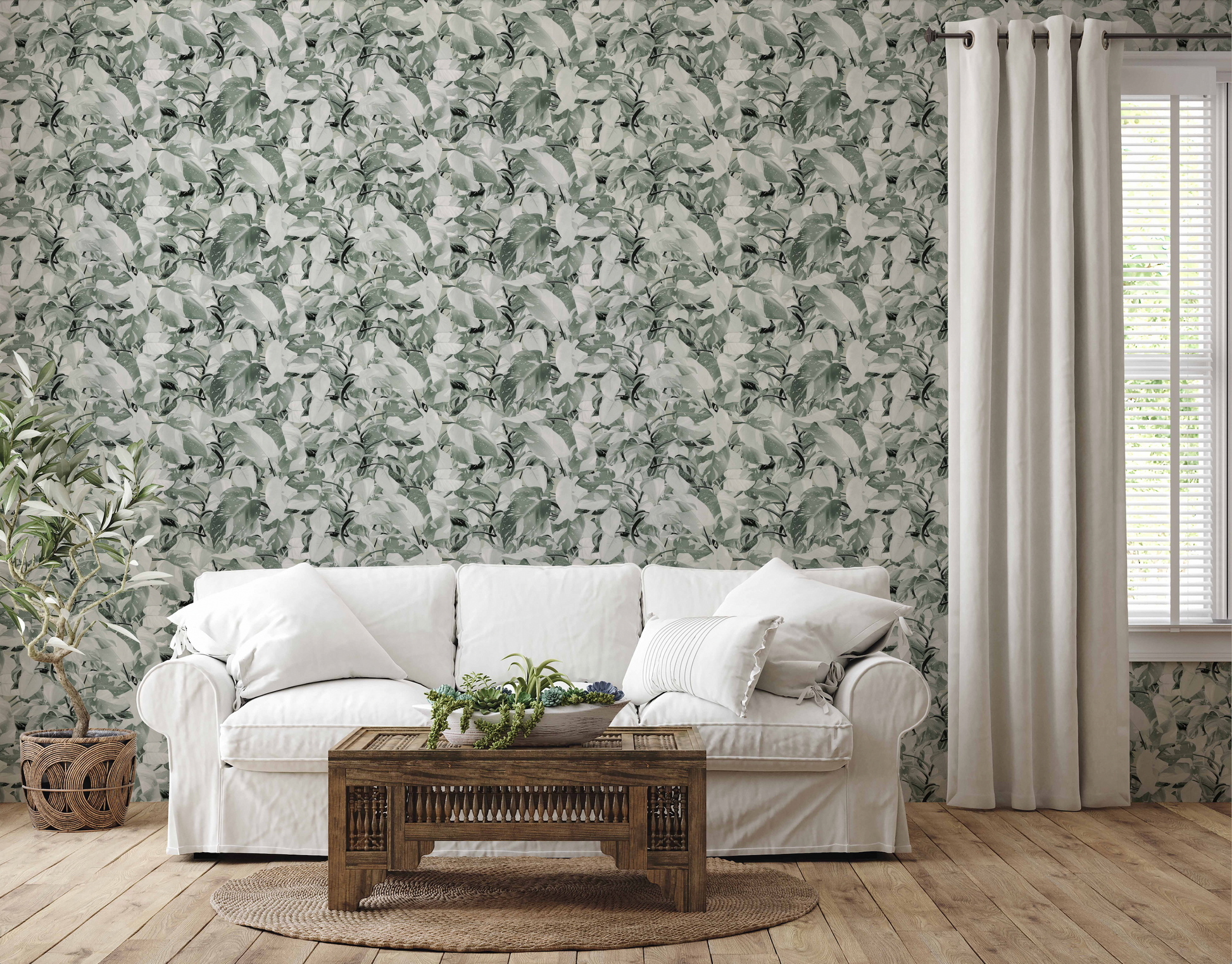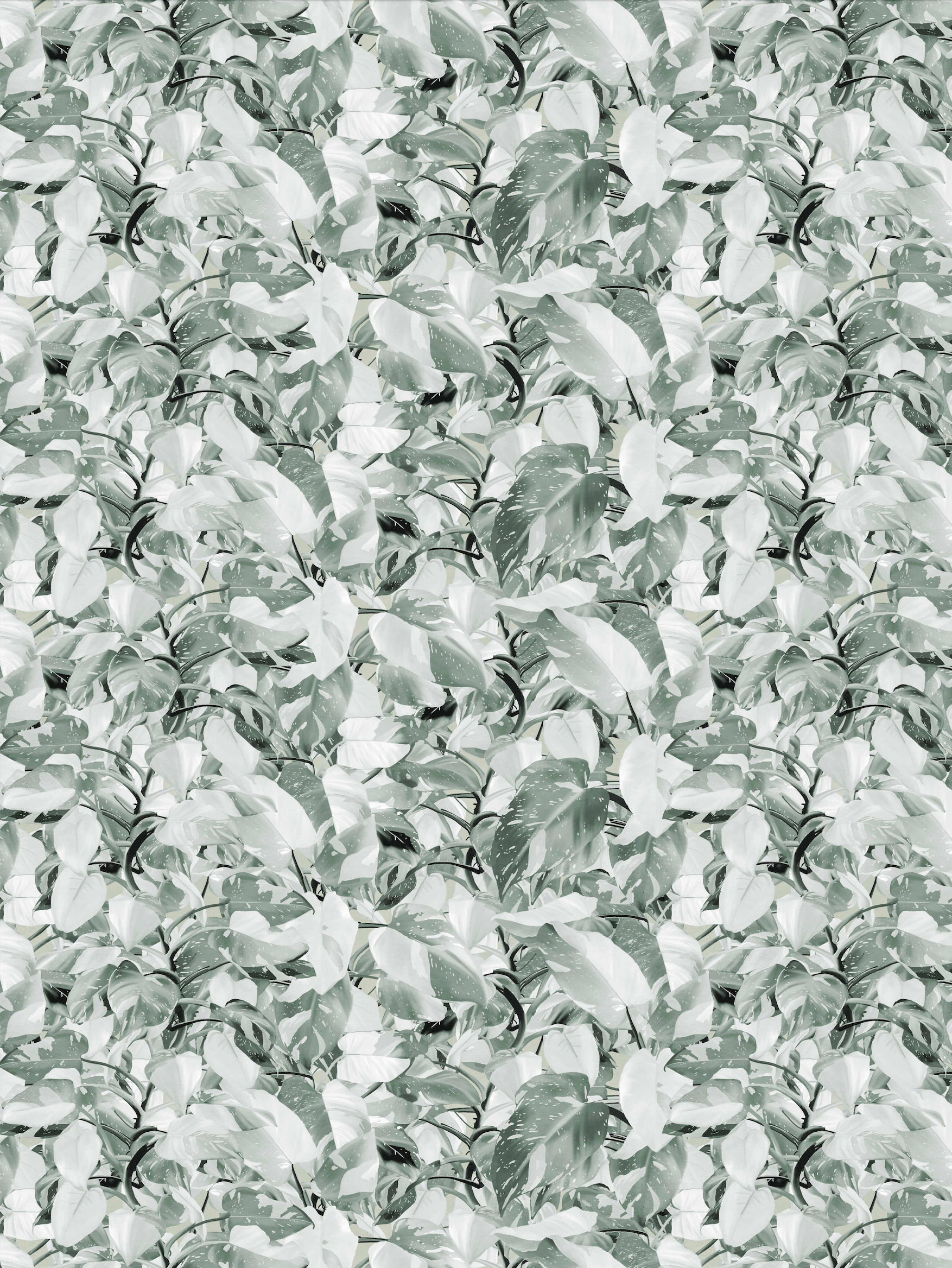 Hyperrealistic philodendron pattern. Repeats every 36" All wallpaper has a 1/4 inch overlap to make for an easy installation EXCEPT for the Grasscloth, this material has zero overlap.