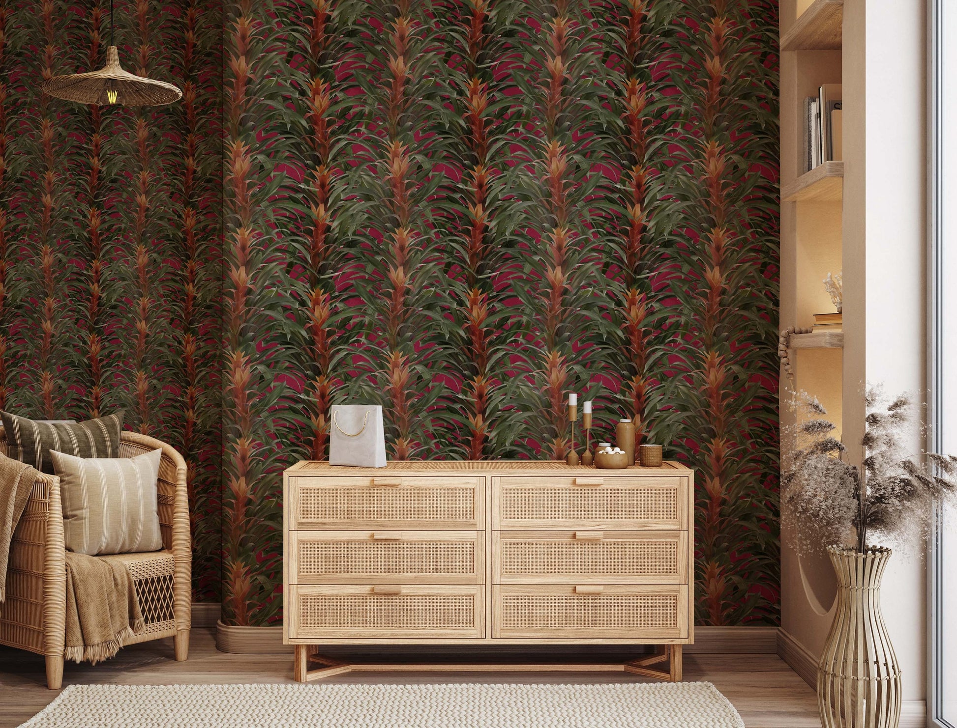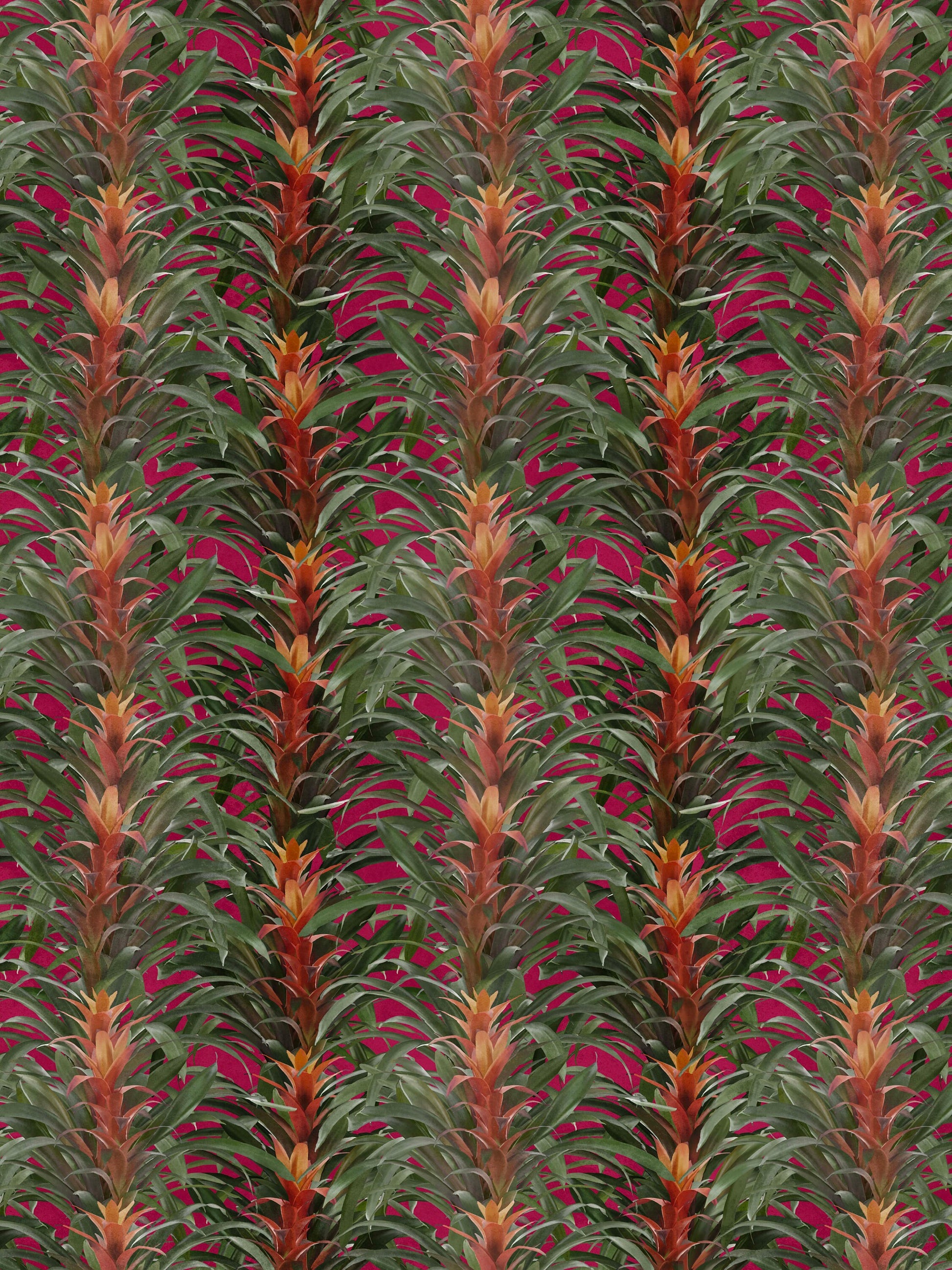 Hyperrealistic Bromeliads. All hand drawn in Old Town, Pasadena. Repeats every 18"