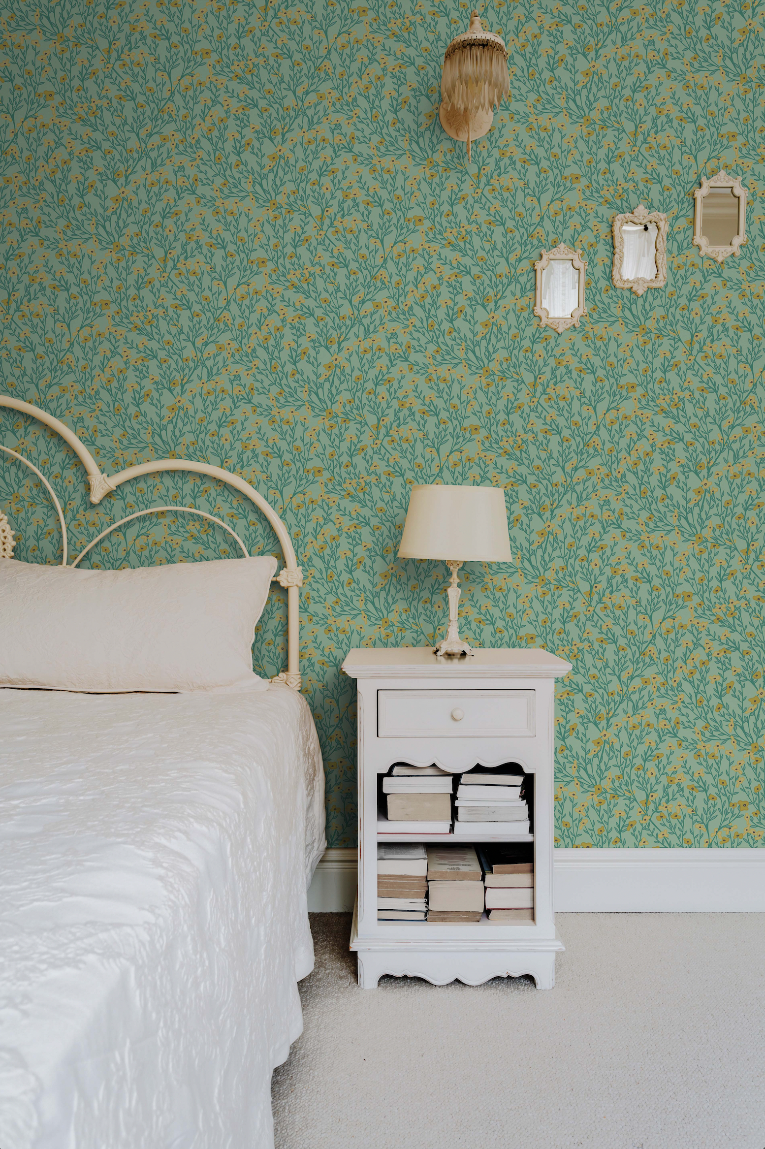 Hand drawn abstract dainty florals, perfect for a cozy interior. Inspired by flower fields, repeats ever 18" All wallpaper has a 1/4 inch overlap to make for an easy installation EXCEPT for the Grasscloth, this material has zero overlap.