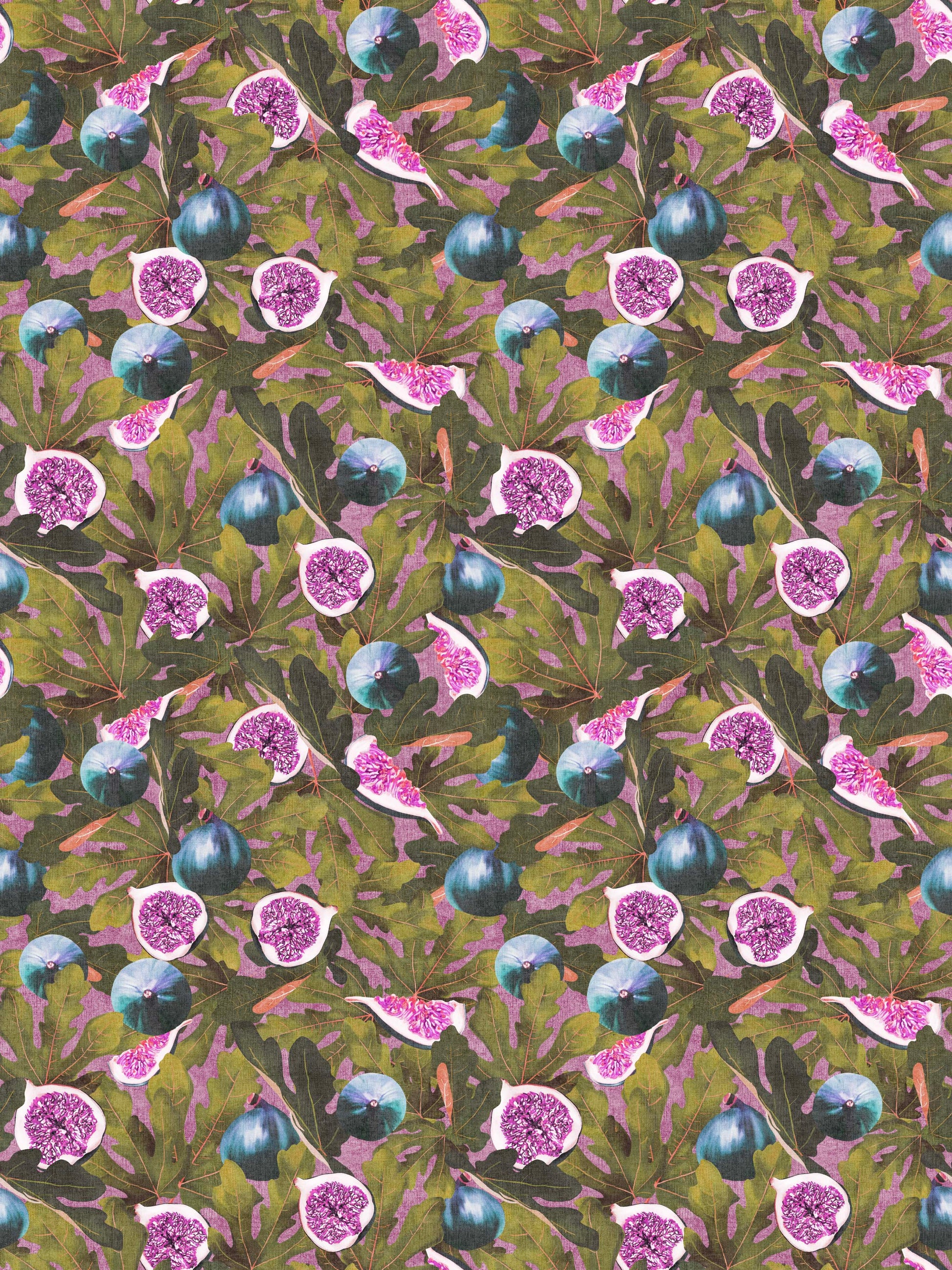 Hyperrealistic figs. Figs are a symbol to many people, especially around the mediterranean. A homage to the homeland, Croatia. Repeats every 18" All wallpaper has a 1/4 inch overlap to make for an easy installation EXCEPT for the Grasscloth, this material has zero overlap.