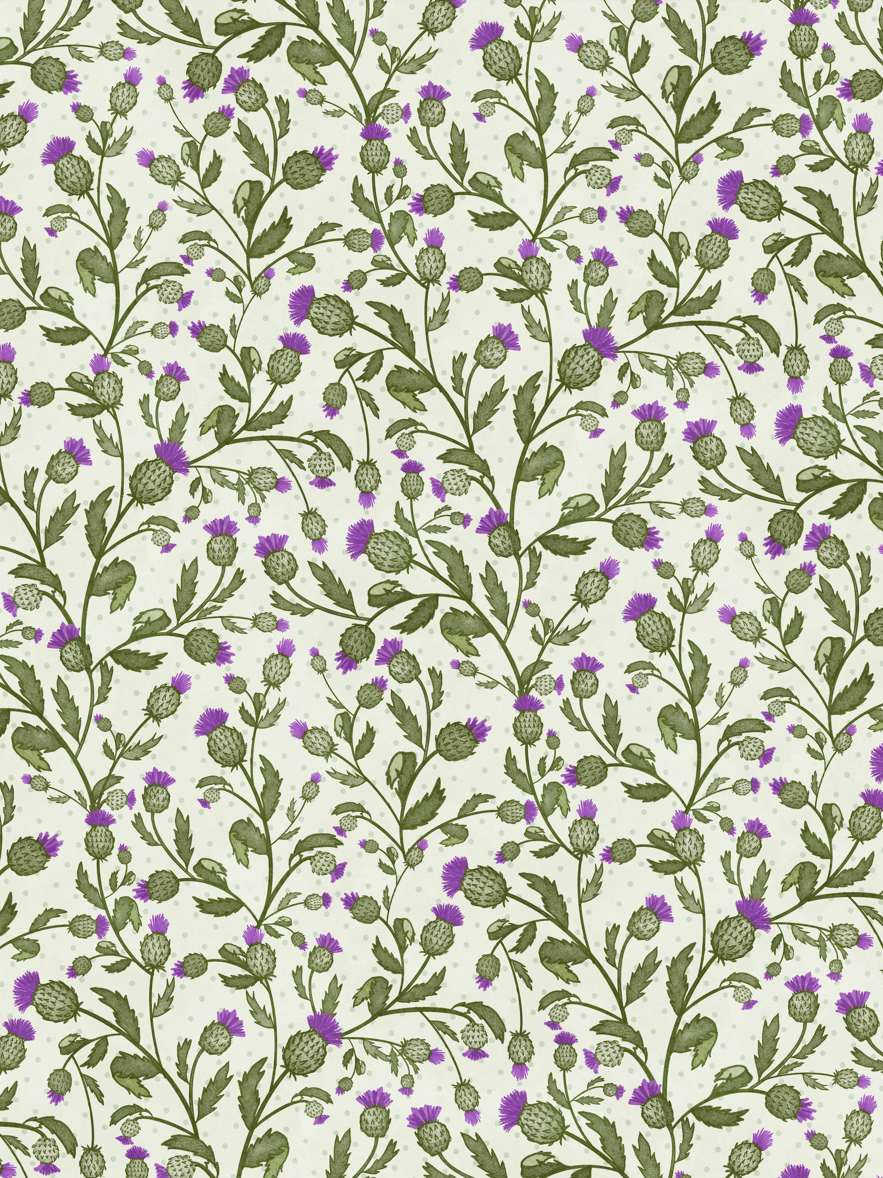 Playful all over of thistles, the flower of the Adriatic. It's another homage to the homeland, Croatia. Repeats every 18" All wallpaper has a 1/4 inch overlap to make for an easy installation EXCEPT for the Grasscloth, this material has zero overlap.