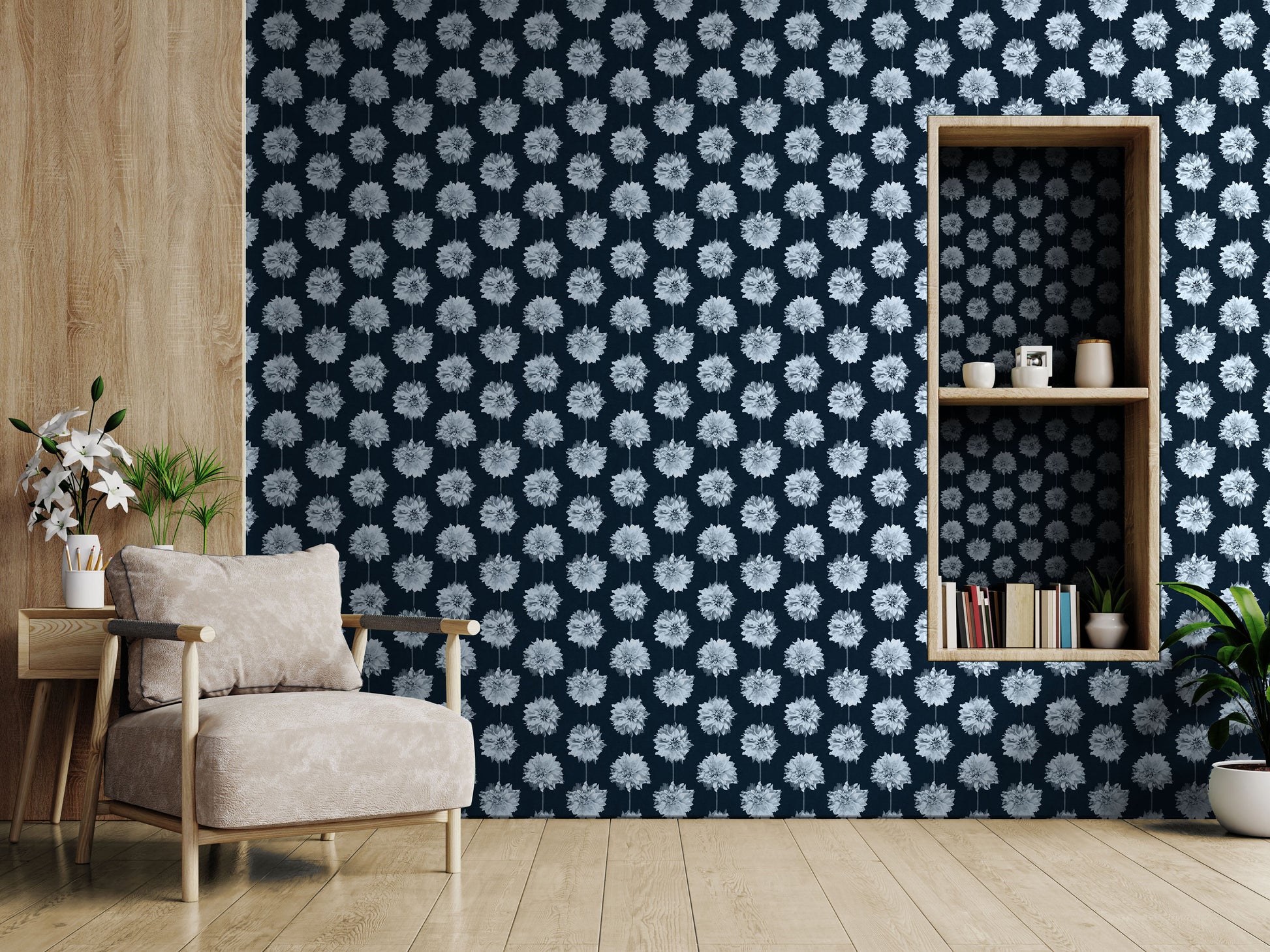 Hyperrealist Dahlia striped out. All hand drawn in Old Town, Pasadena. Repeats every 18"