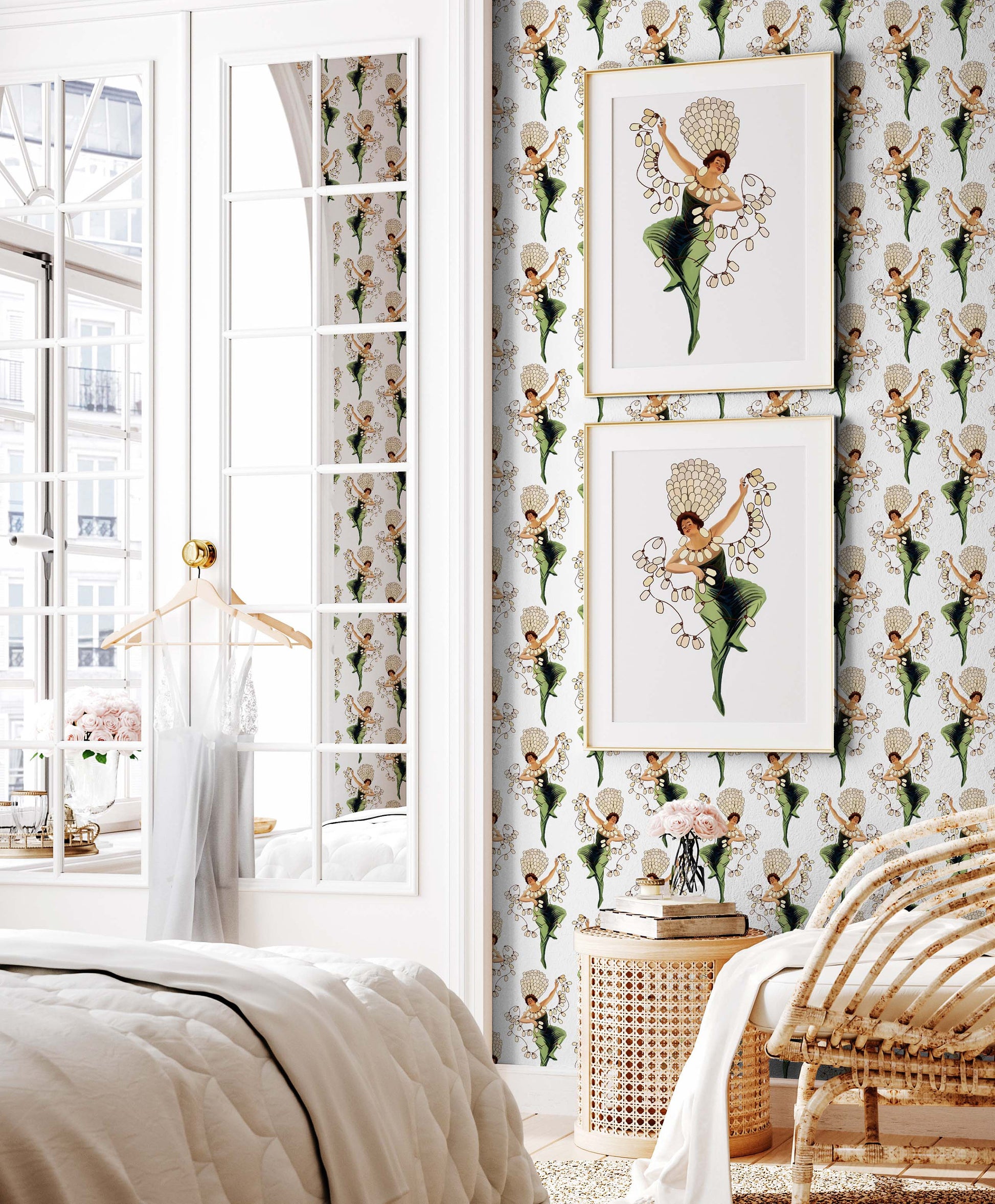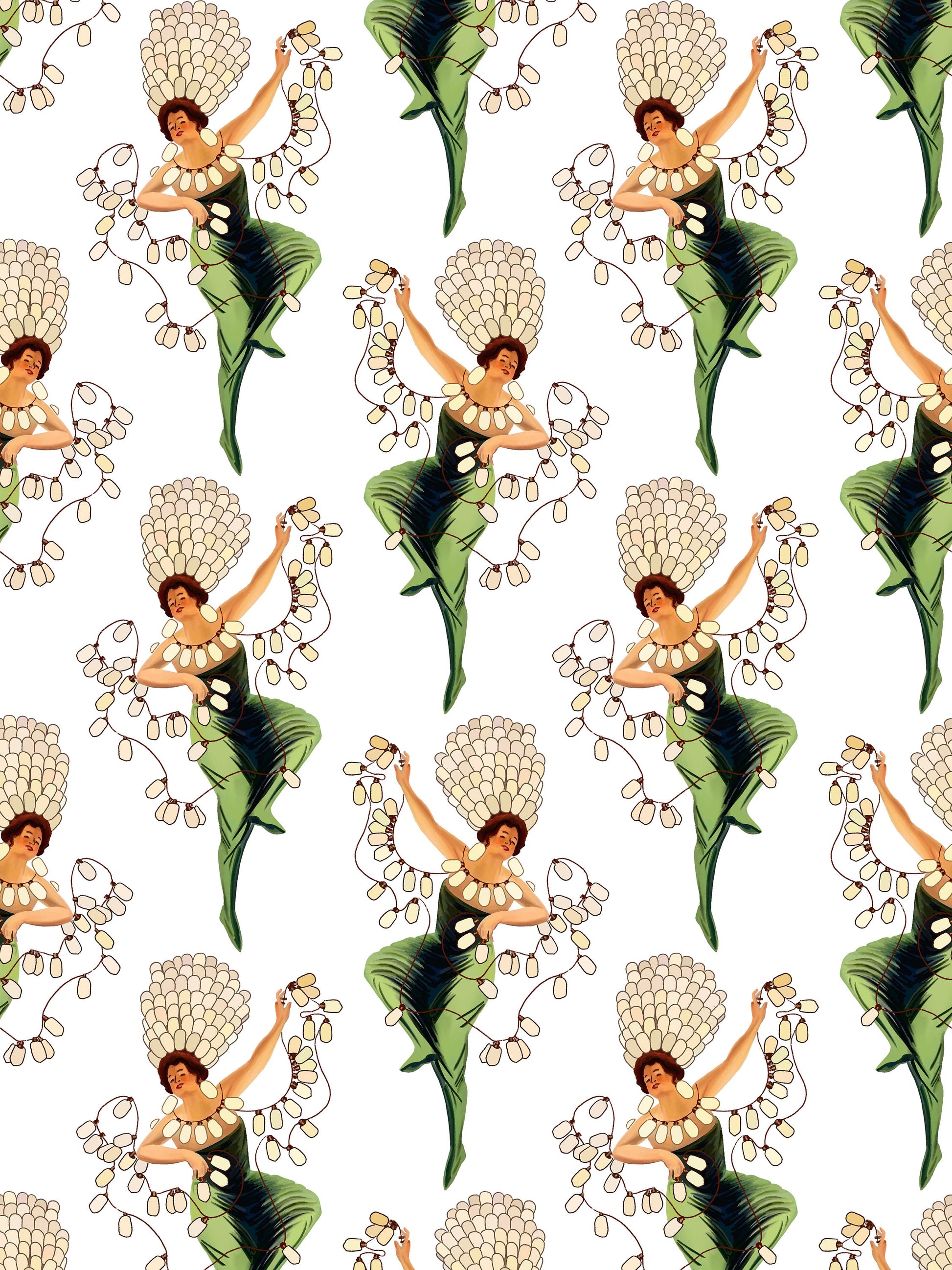Taken from old Art Nouveau adverts, the lightbulb lady has been redrawn and repeated out to make for a wonderful pattern. All hand drawn in Old Town Pasadena. Repeats every 21"