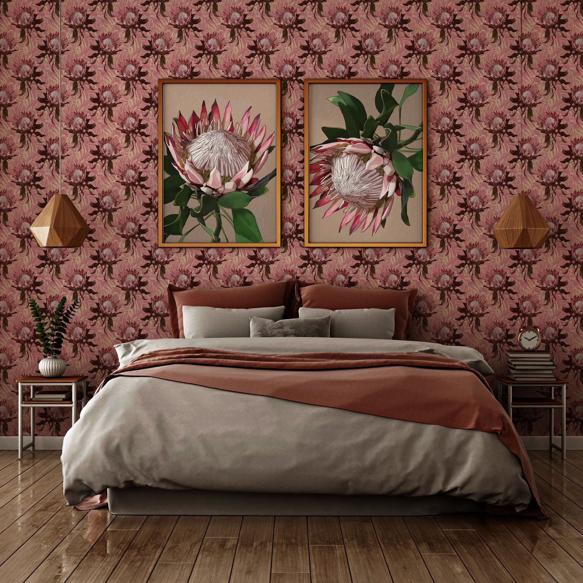 Empress Protea with a eucalyptus repeat in the background. All hand drawn in Old Town, Pasadena. Repeats every 20"