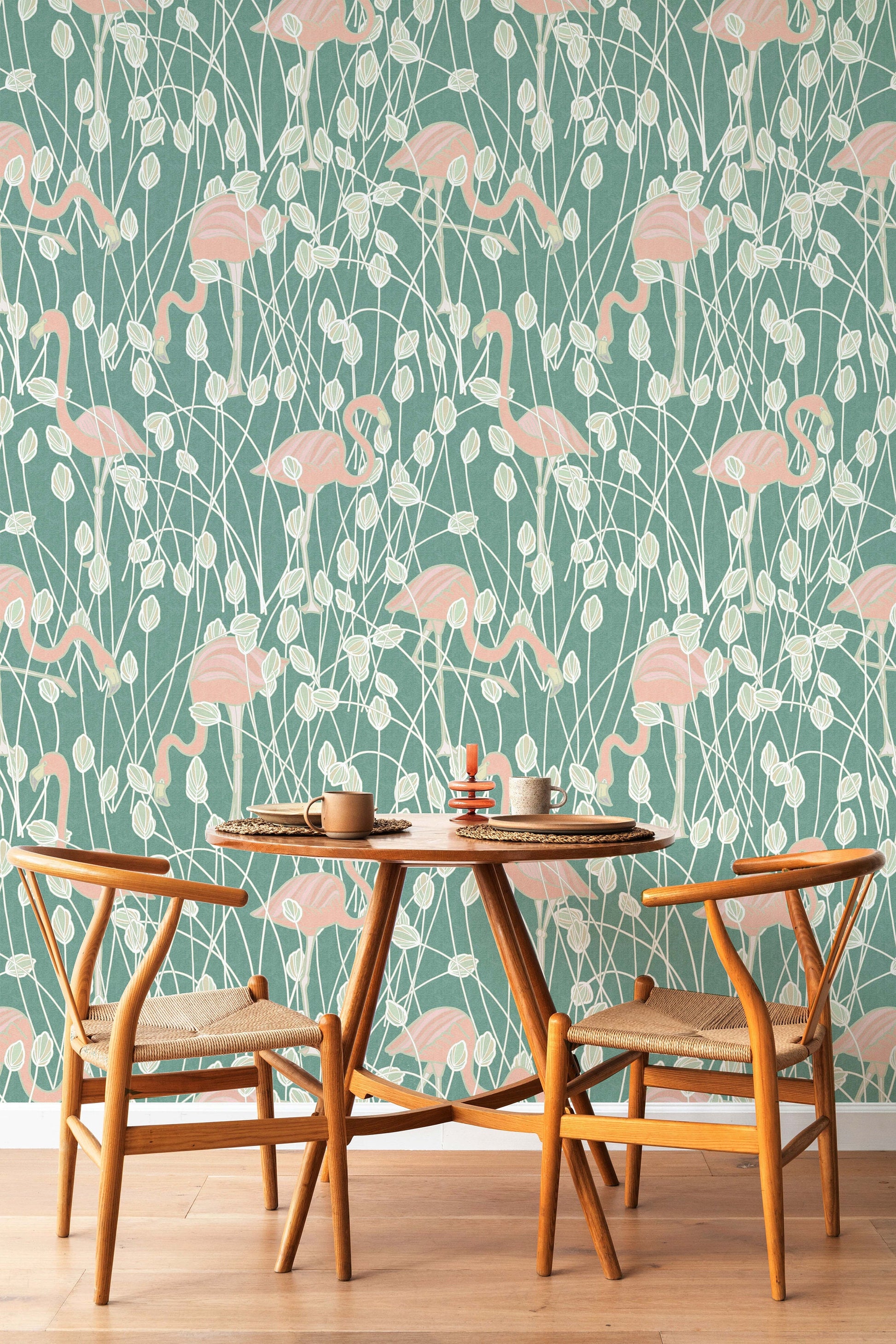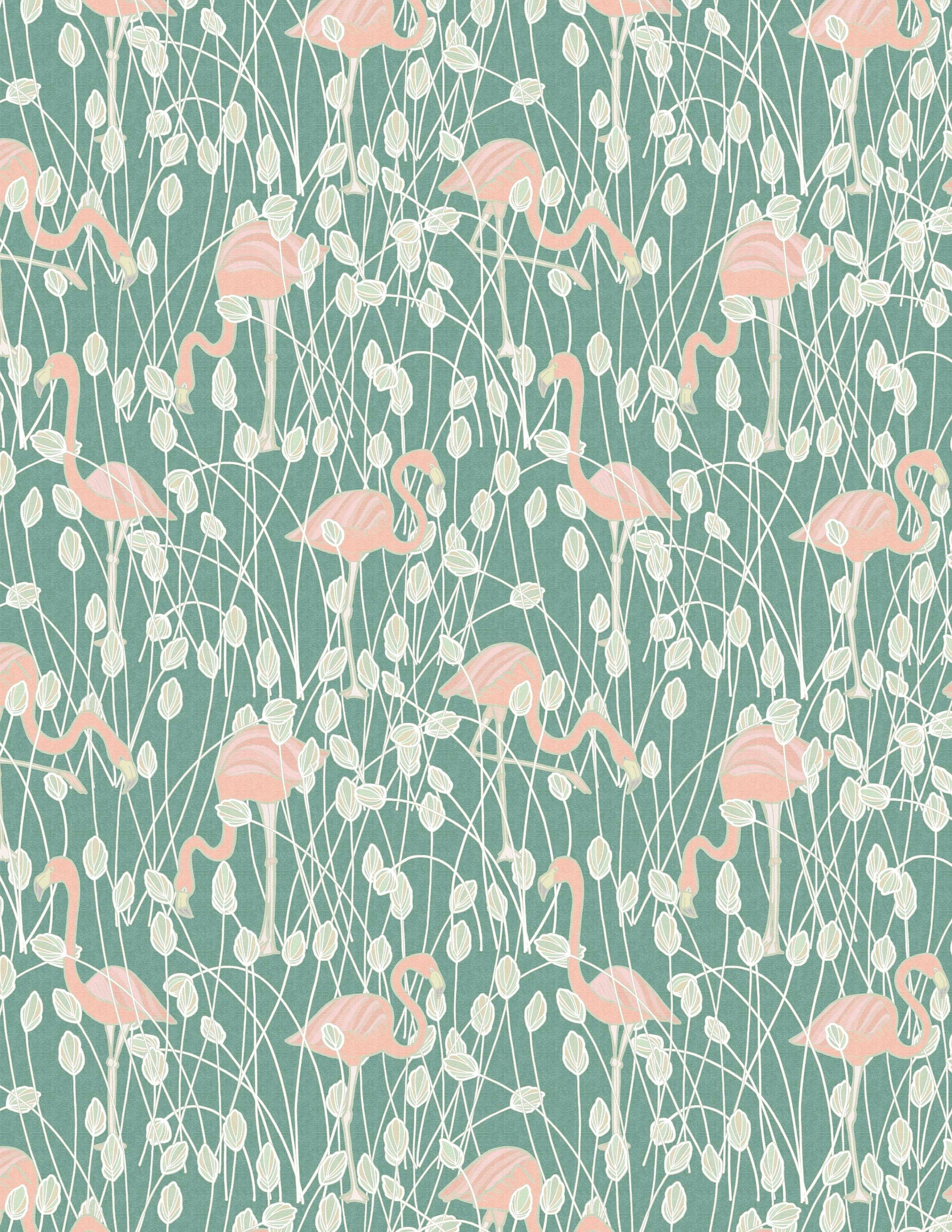 Flamingo Pond is a pattern flamingos and tall grass. All motifs were hand drawn in Norwich UK.