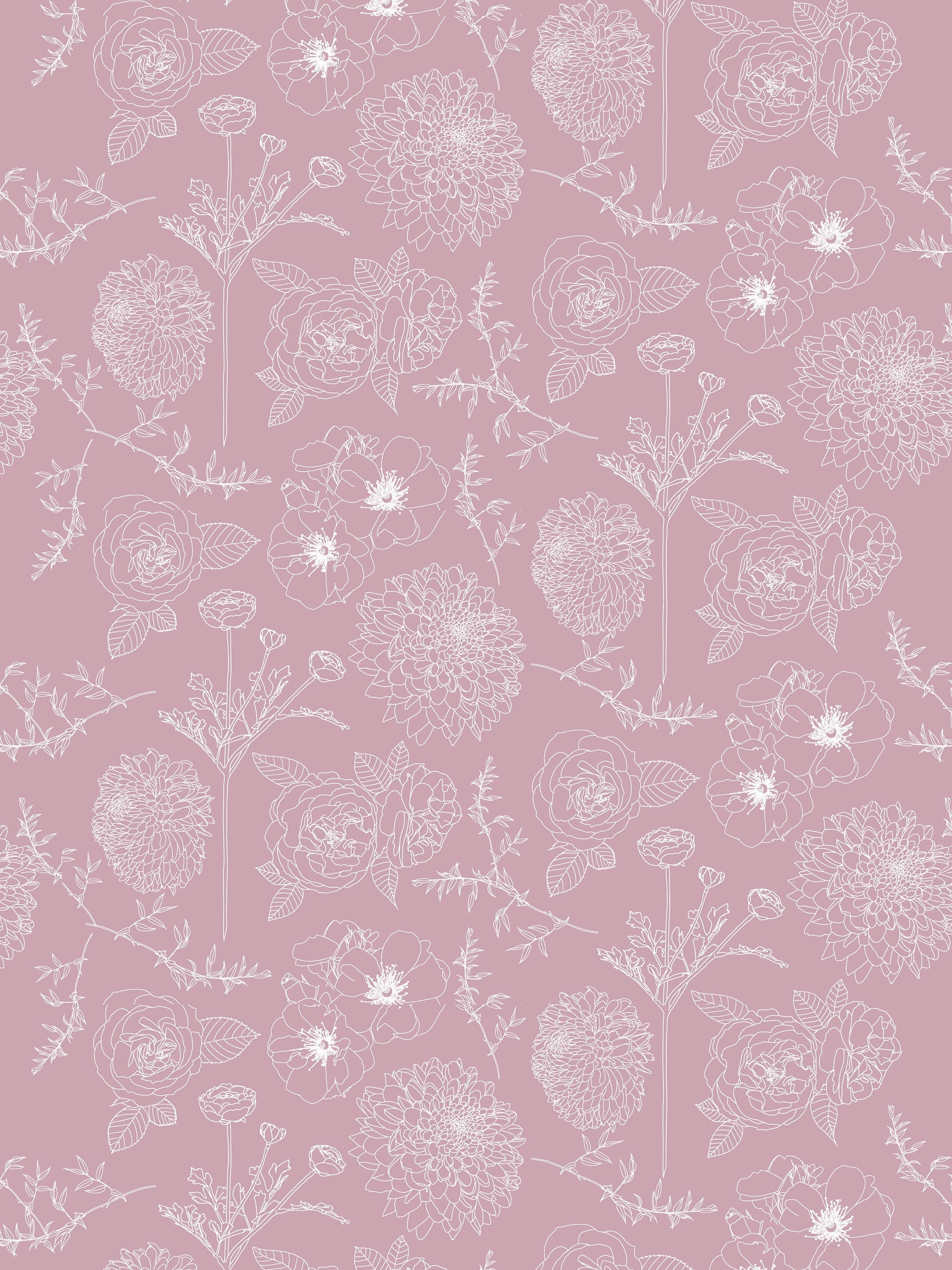 Intricate floral line drawing. All hand drawn in Old Town, Pasadena. Repeats every 18"