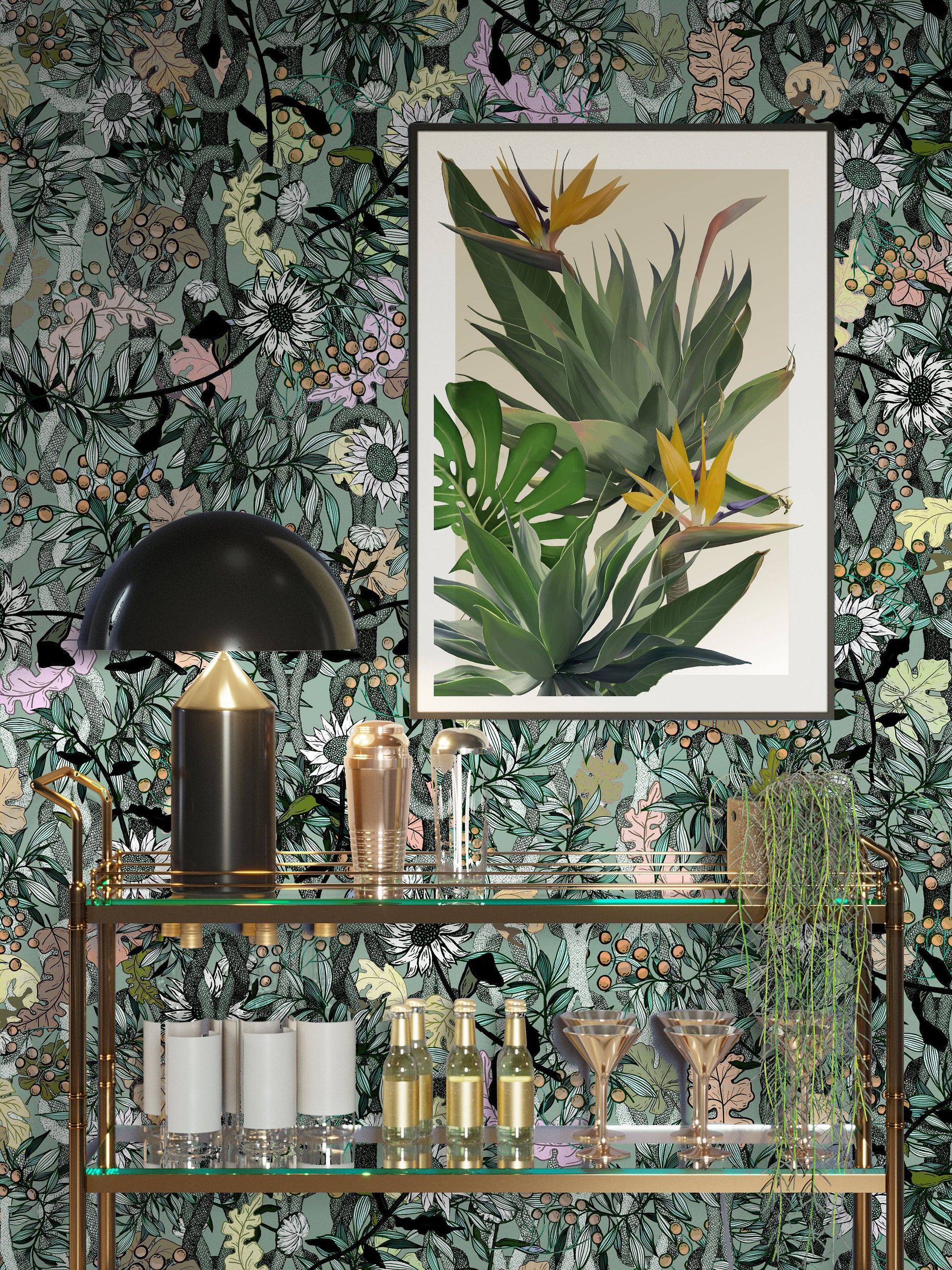 Floral Rope is a compilation of foliage woven around a sailors knot. All hand drawn in Old Town, Pasadena. Repeats every 62"