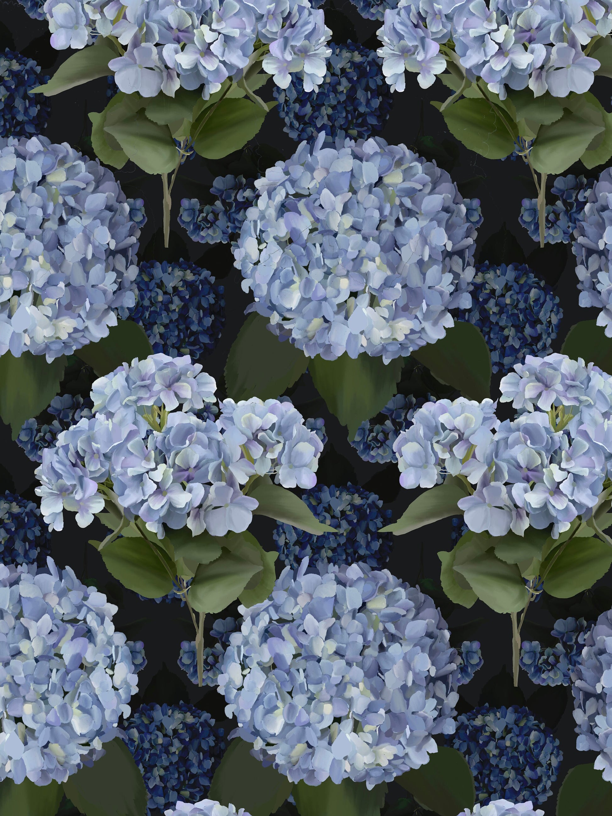 Hyperrealistic Hydrangea . All hand drawn in Old Town, Pasadena. Repeats every 24"