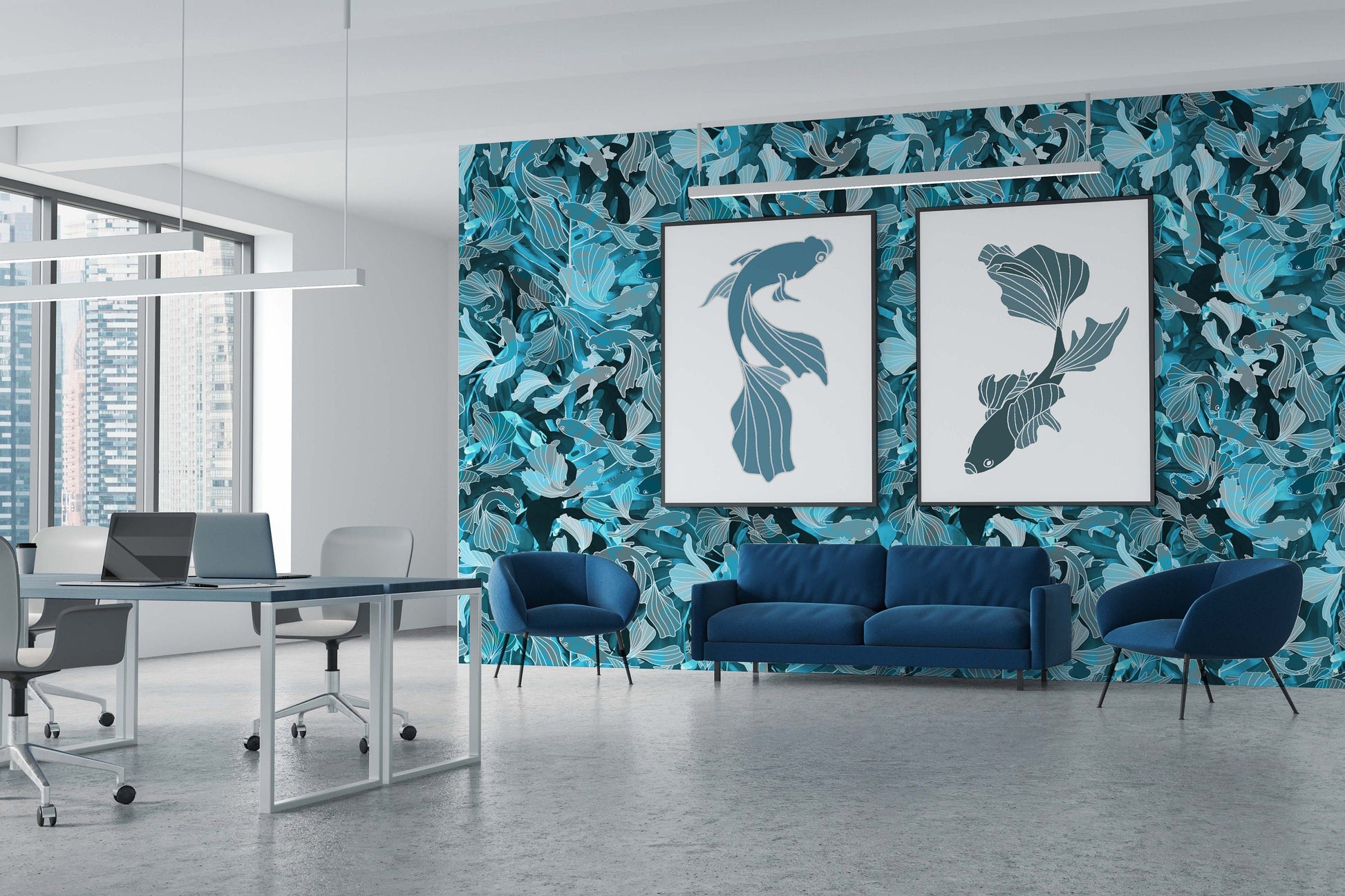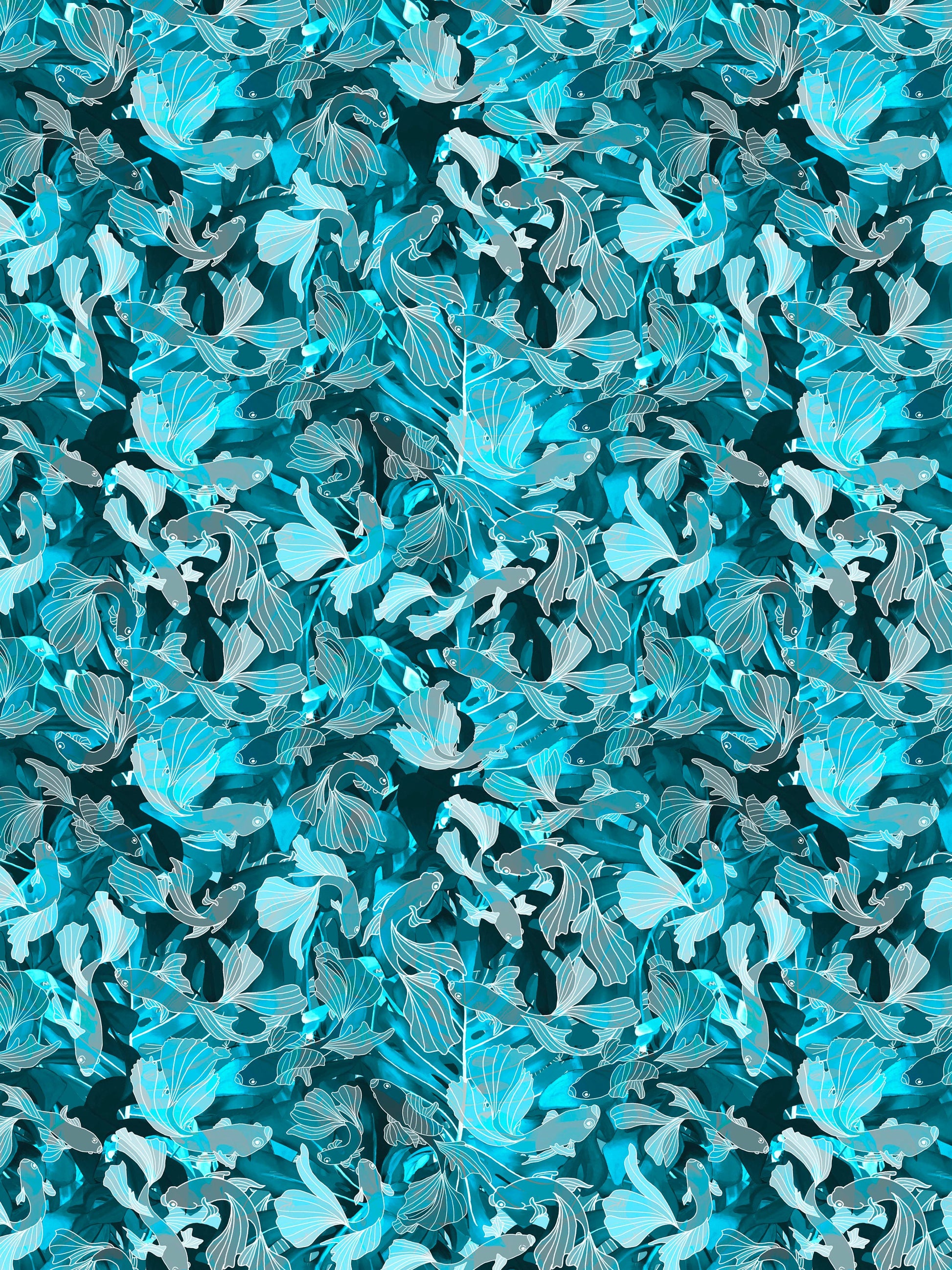 Koi Jungle is a combination of Monsteras and Koi's. All motifs are hand drawn in Old Town Pasadena.