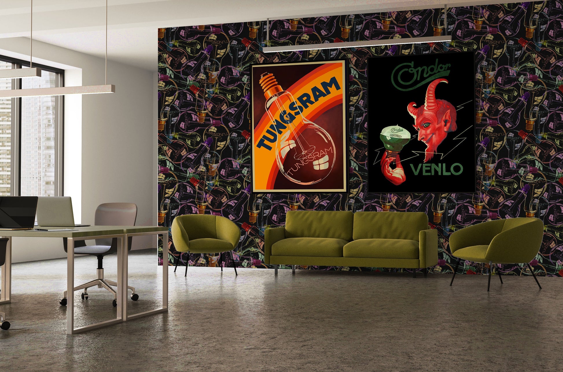 Lightbulbs is taken from a 1920s Tungsram advert. All hand drawn in Old Town, Pasadena. Repeats every 25"