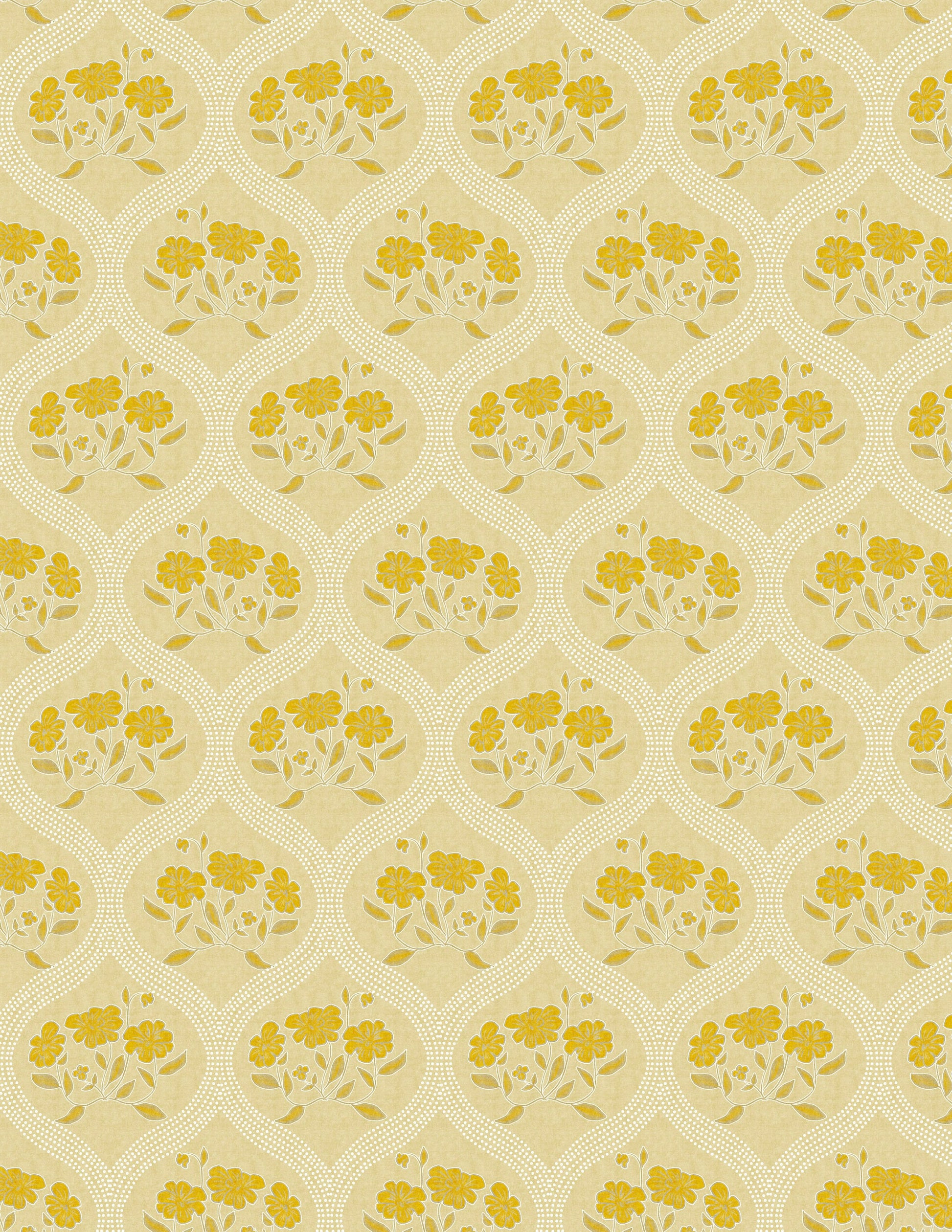 Freehand medallion floral with dotted border. All hand drawn in Old Town, Pasadena. Repeats every 13"