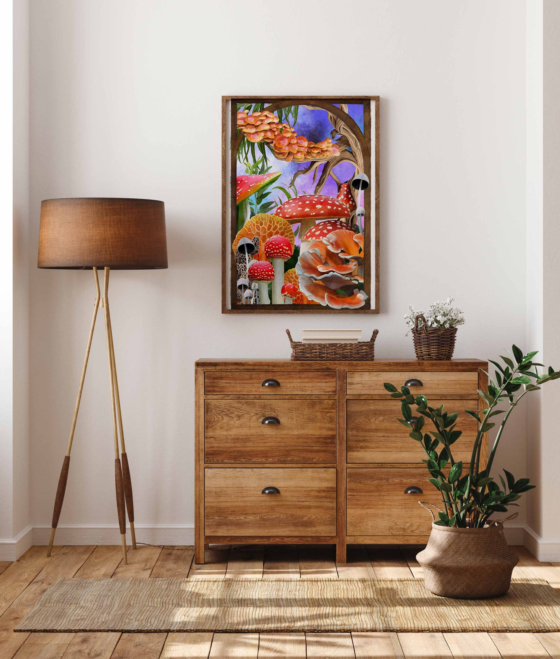 Surrealist-inspired setting of a Mushroom field.