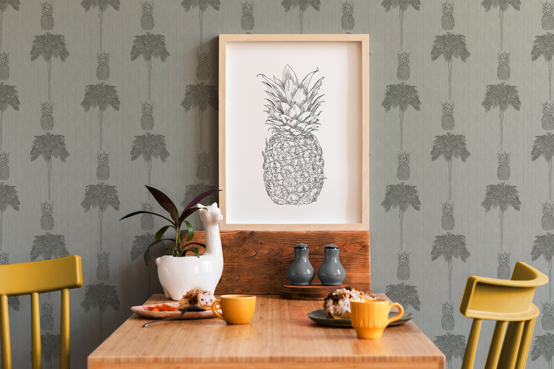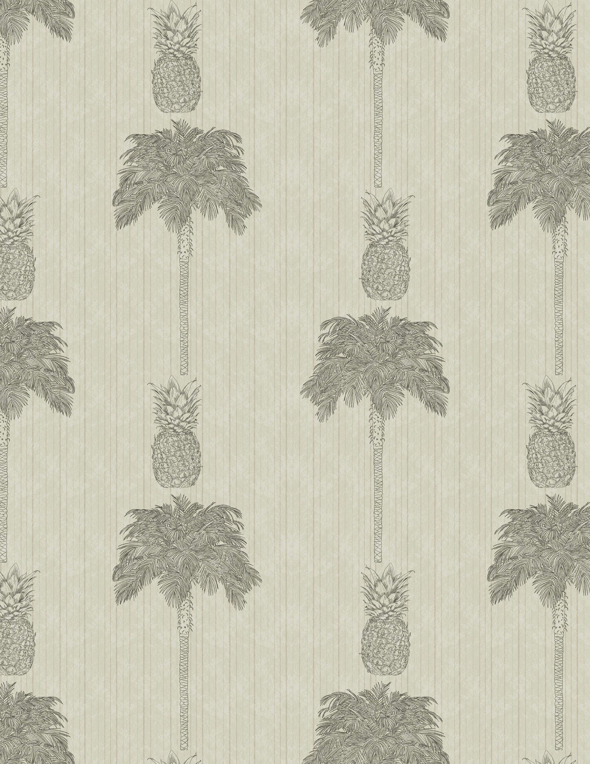 Line drawings of pineapples and palms over a subtle stripe. All motifs were hand drawn in Old Town Pasadena.