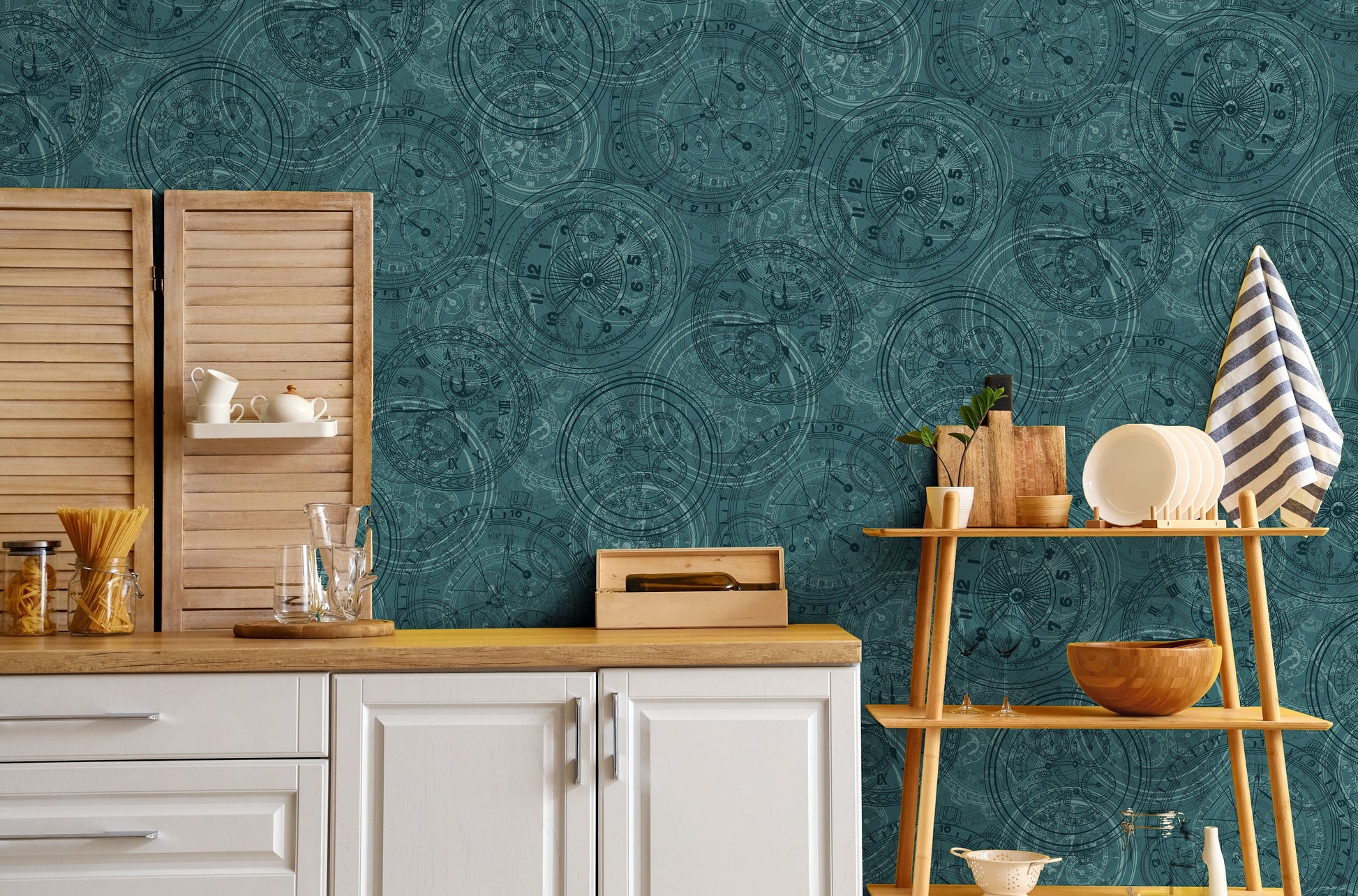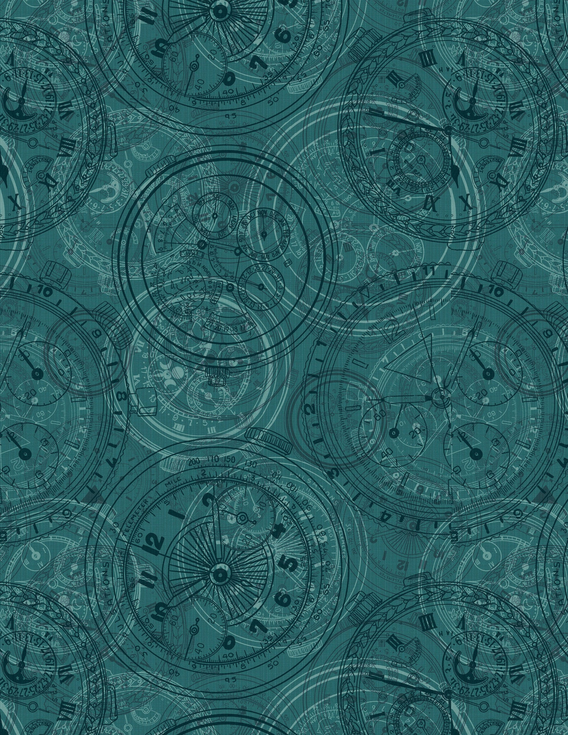 Assortment of different clocks overlapping each other. All motifs were hand drawn in Old Town Pasadena.