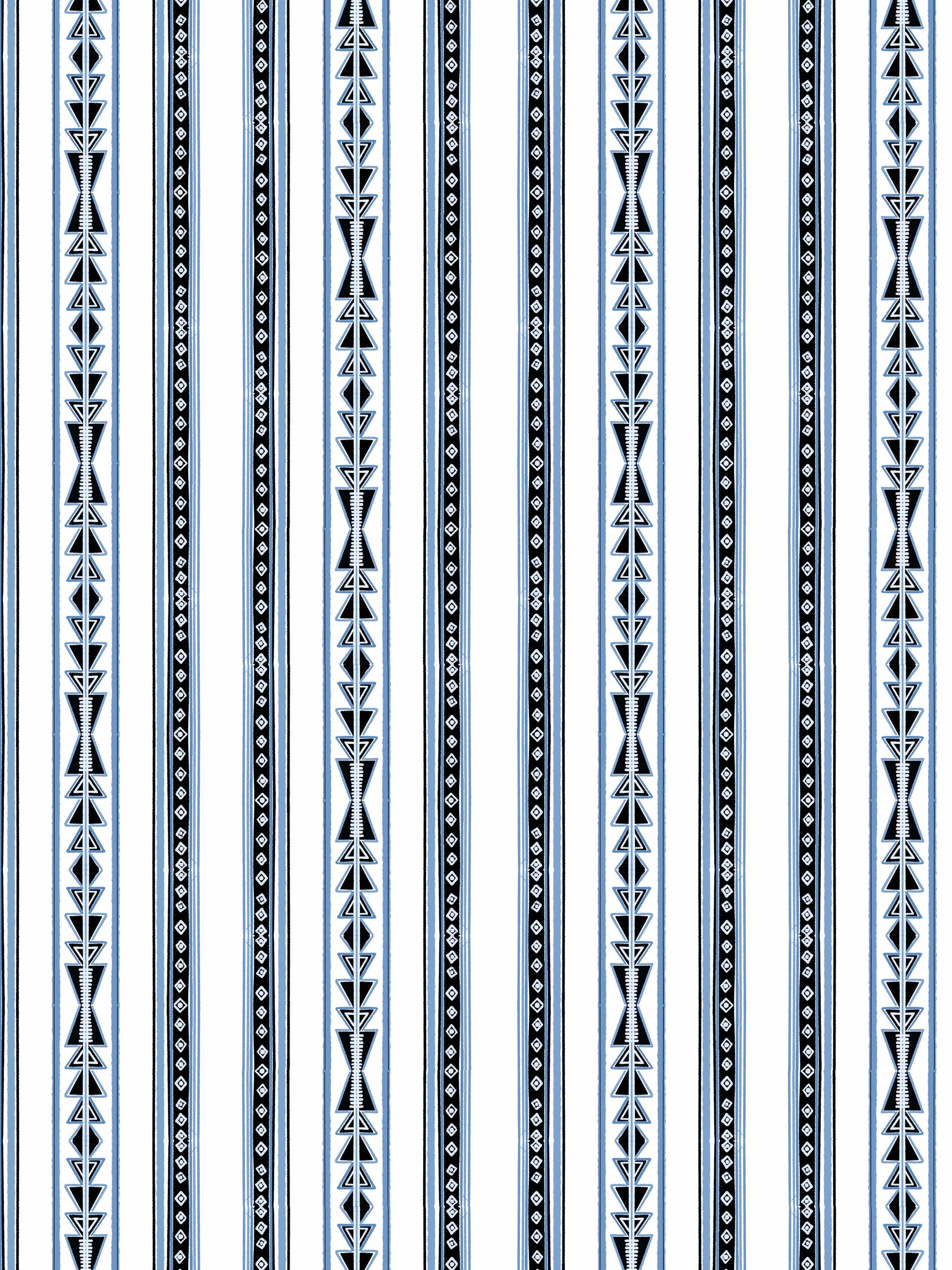 Fun stripe with some tribal motifs. All hand drawn in Old Town, Pasadena. Repeats every 14"