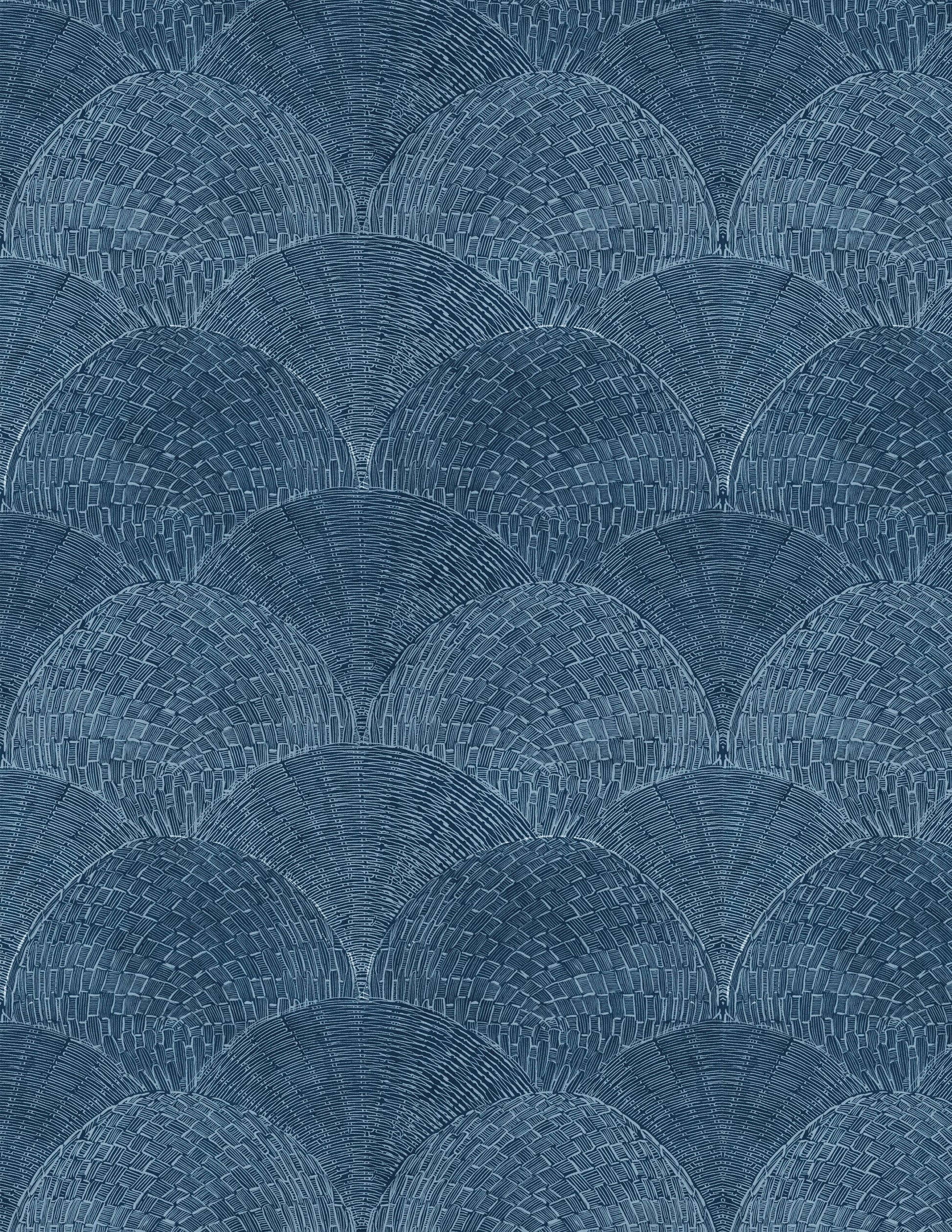 Wicker fan line drawing tiled for a scalloped look. All hand drawn in Old Town, Pasadena. Repeats every 21.5"