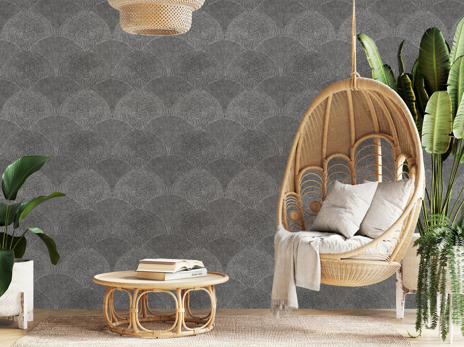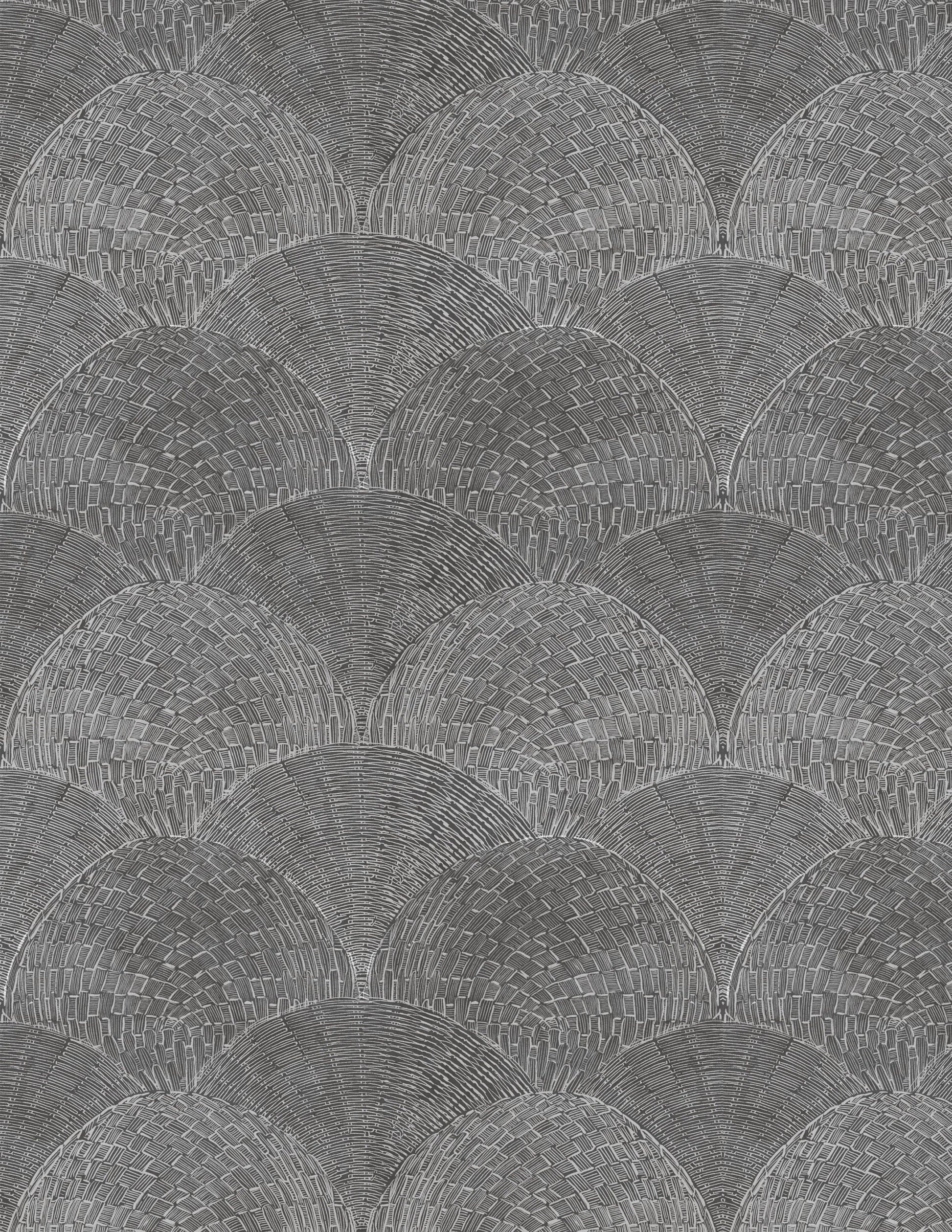 Wicker fan line drawing tiled for a scalloped look. All hand drawn in Old Town, Pasadena. Repeats every 21.5"