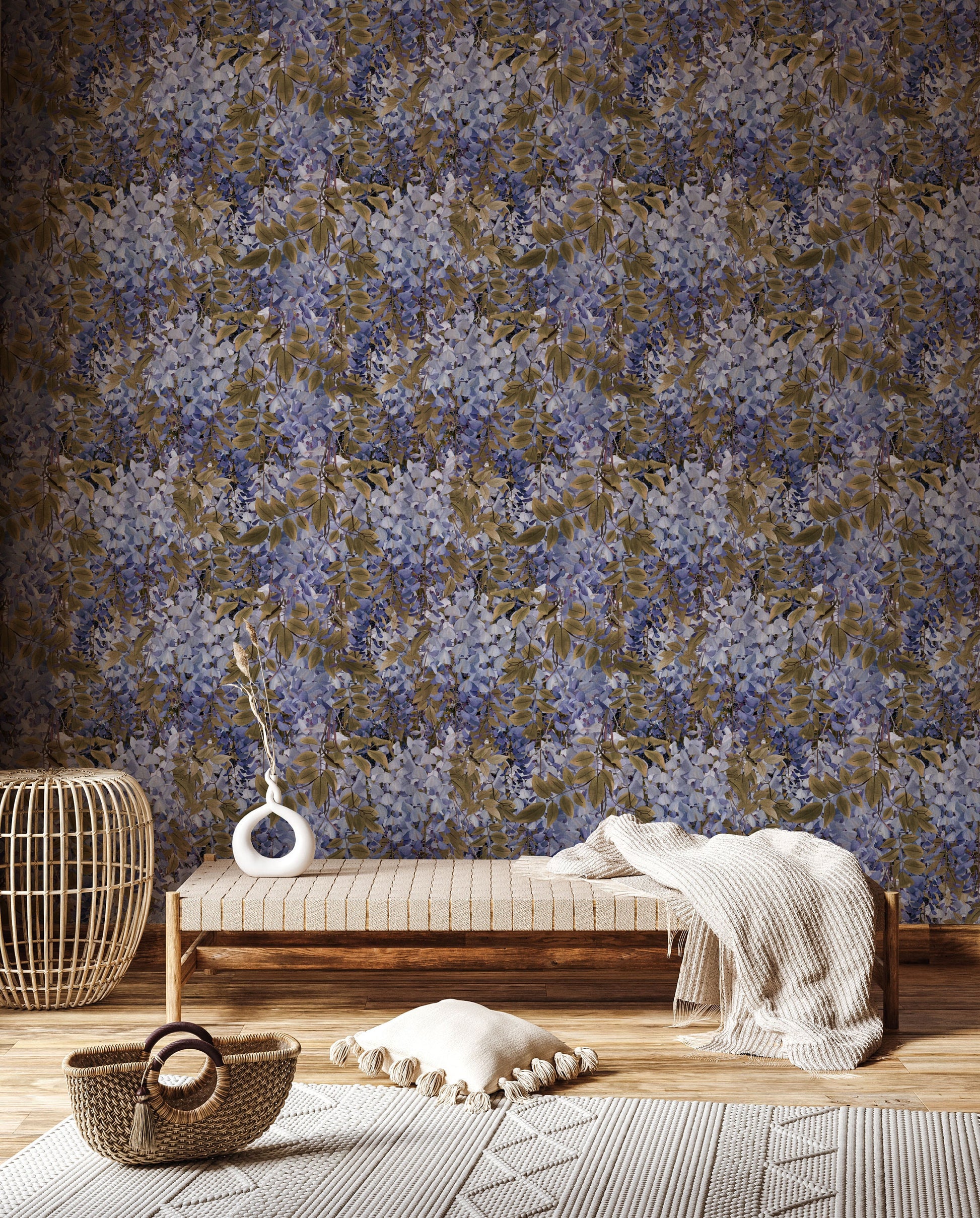 Hyper realistic wisteria all over,. All hand drawn in Old Town, Pasadena. Repeats every 30.5"